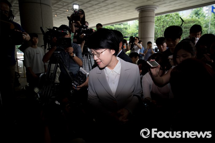 (서울=포커스뉴스) 총선 홍보비 리베이트 의혹에 휩싸인 박선숙 국민의당 의원이 구속 전 피의자 심문(영장실질심사)를 받기 위해 11일 오후 서울서부지방법원으로 들어서고 있다.