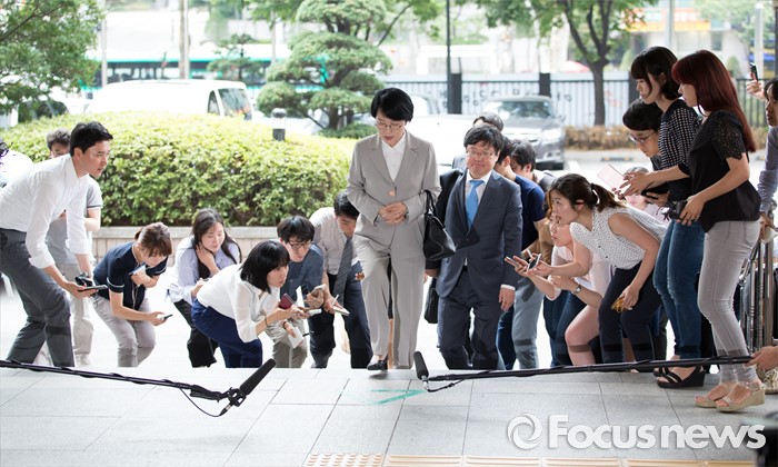 | △ 영장실질심사 위해 법원 들어서는 박선숙 |