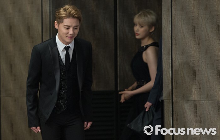 (서울=포커스뉴스) 11일 오후 서울 종로구 포시즌스호텔 서울에서 열린 뮤지컬 '도리안 그레이' 제작발표회에 참석한 배우 김준수가 포토타임을 위해 이동하고 있다.