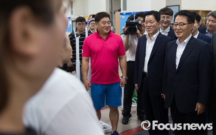 | △ 박지원, 역도 국가대표 선수들 격려 |