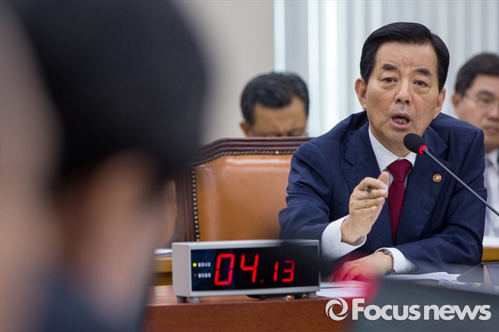 이어 경대수 새누리당 의원이 사드에 대한 유언비어가 난무하고 있는 점을 지적하자 한 장관은 "사드는 군사적으로 효용성이 입증됐고 안전에도 문제가 없다"며 "전자파 문제는 기지 내에 있는 장병에 해당된 것이고 지역주민은 상관없다. 이런 부분을 적극적으로 홍보하겠다"고 답했다.한민구 국방부 장관. 2016.07.11 강진형 기자 한민구 국방부 장관. 2016.07.11 강진형 기자