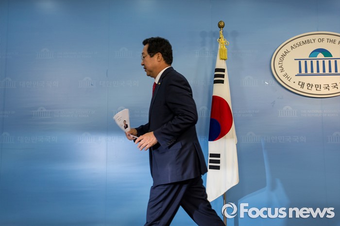 (서울=포커스뉴스) 이장우 새누리당 의원이 12일 오전 서울 여의도 국회에서 오는 8월9일 전당대회 최고위원 선거 출마를 선언한 뒤 기자회견장을 나서고 있다.