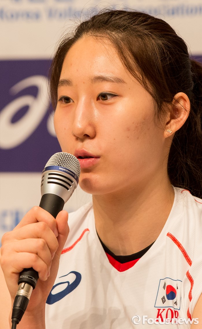 (진천=포커스뉴스) 12일 오전 충북 진천 선수촌 대강당에서 열린 '대한민국 여자배구 국가대표선수단 기자회견'에 참석한 박정아 선수가 각오를 밝히고 있다. 이날 기자회견을 가진 여자배구 선수단은 리우올림픽을 대비해 23일 네덜란드로 전지훈련을 떠날 계획이다.