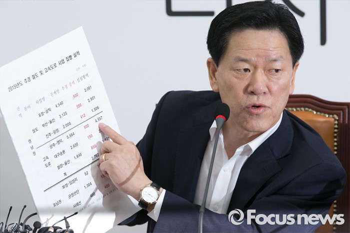 (서울=포커스뉴스) 13일 오전 서울 여의도 국회에서 열린 국민의당 비상대책위원회의에 참석한 주승용 비대위원이 2015년도 추경 철도 및 고속도로 사업 집행 실적을 들고 발언하고 있다.
