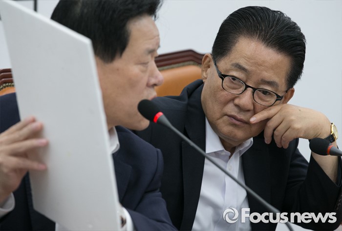 (서울=포커스뉴스) 13일 오전 서울 여의도 국회에서 열린 국민의당 비상대책위원회의에 참석한 박지원(오른쪽) 비대위원장이 주승용 비대위원의 2015년도 추경 철도 및 고속도로 사업 집행 실적 관련 발언을 듣고 있다.