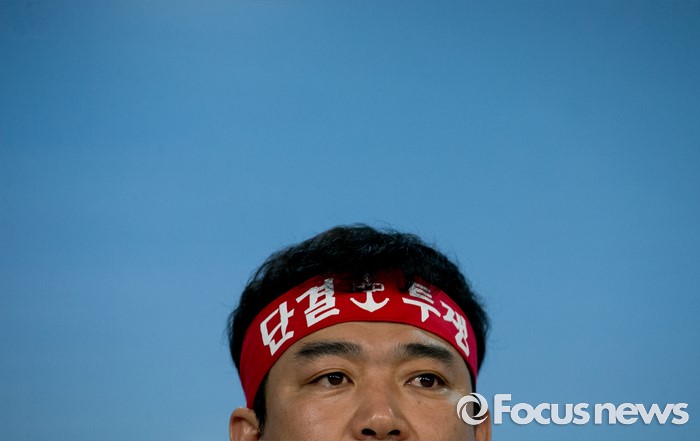 (서울=포커스뉴스) 13일 오전 서울 여의도 국회 정론관에서 조선업종노조연대 등 관계자들이 일방적 구조조정에 반대하는 총파업 선언 기자회견을 하고 있다.