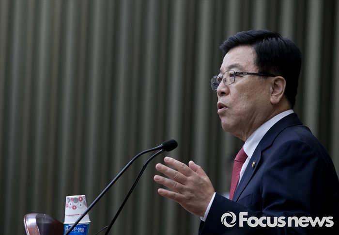 (서울=포커스뉴스) 13일 오후 서울 여의도 국회에서 열린 포용적 시장경제와 새누리당의 진로 토크 콘서트에 참석한 김광림 정책위의장이 축사를 하고 있다.