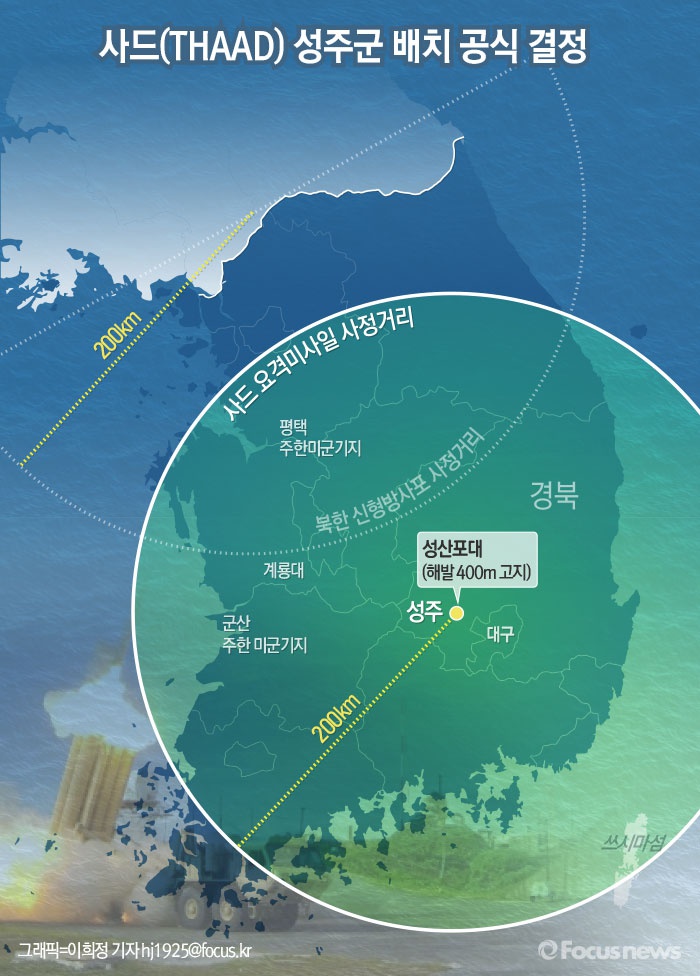 (서울=포커스뉴스) 경상북도 성주군이 사드(THAAD·고고도 미사일방어체계) 배치 지역으로 공식 확정됐다.
