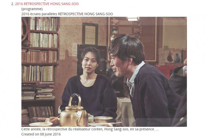 '제27회 마르세유국제영화제'는 지난 12일(현지시각)부터 18일까지 열리는 세계적인 국제영화제이다. 홍 감독은 이번 영화제에서 17편에 달하는 자신의 작품이 상영되는 '회고전'에 초대돼, 감독 신분으로 행사 자리에 참석한다.마르세유국제영화제에서 홍상수 회고전으로 재개봉하는 2015년 개봉 영화 '지금은 맞고, 그때는 틀리다'가 해당 웹사이트에서 소개되고 있고 있다. 국내 매체는 홍 감독이 이 영화를 계기로 김민희와 인연을 이어왔다고 보도했다. <사진제공=마르세유국제영화제> 2016.07.12 최형욱 기자 wook@focus.co.kr