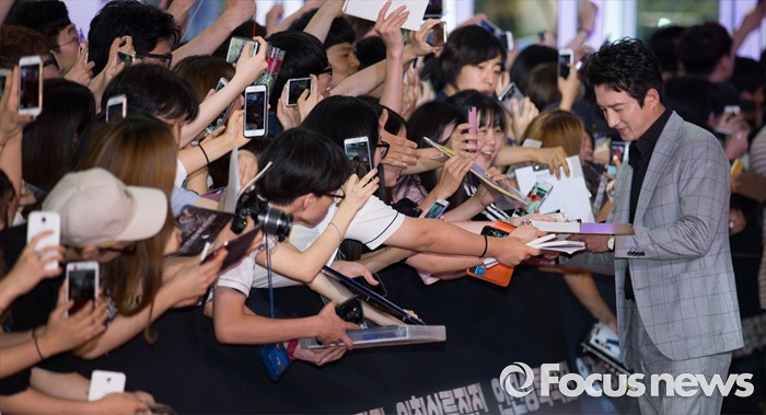 (서울=포커스뉴스) 13일 오후 서울 영등포구 타임스퀘어에서 열린 영화 '인천상륙작전' 레드카펫 행사에 참석한 배우 정준호가 팬들에게 사인 하고 있다.