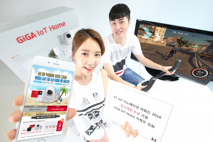 (서울=포커스뉴스) KT는 한국인터넷전문가협회(KIPFA)의 ‘사물인터넷(IoT) 이노베이션 어워드 2016’에서 ‘기가 IoT’가 최고대상을 수상한 기념으로 여름맞이 기가 IoT 홈’ 이벤트를 확대한다.