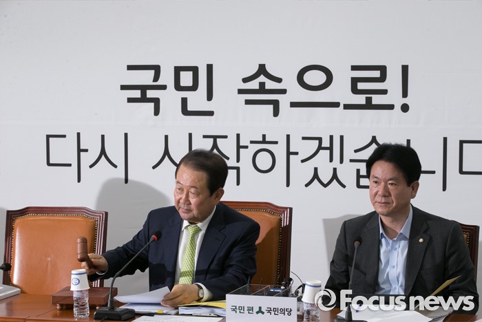 (서울=포커스뉴스) 14일 오전 서울 여의도 국회에서 열린 국민의당 당헌당규제개정위원회 1차 전체회의에 참석한 박주선(왼쪽) 위원장이 개의 선언을 하고 있다.