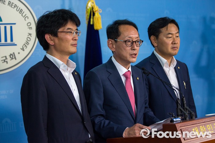 (서울=포커스뉴스) 김도읍(가운데) 새누리당 원내수석부대표가 14일 오후 서울 여의도 국회에서 여야3당 원내수석부대표 합의사항을 발표하고 있다. 이날 여야3당은 사드(고고도미사일방어체계) 국내 배치 결정에 따른 논한과 관련해 다음주 긴급 현안 질의를 위한 국회 본회의를 개최하는데 합의 했다고 밝혔다.