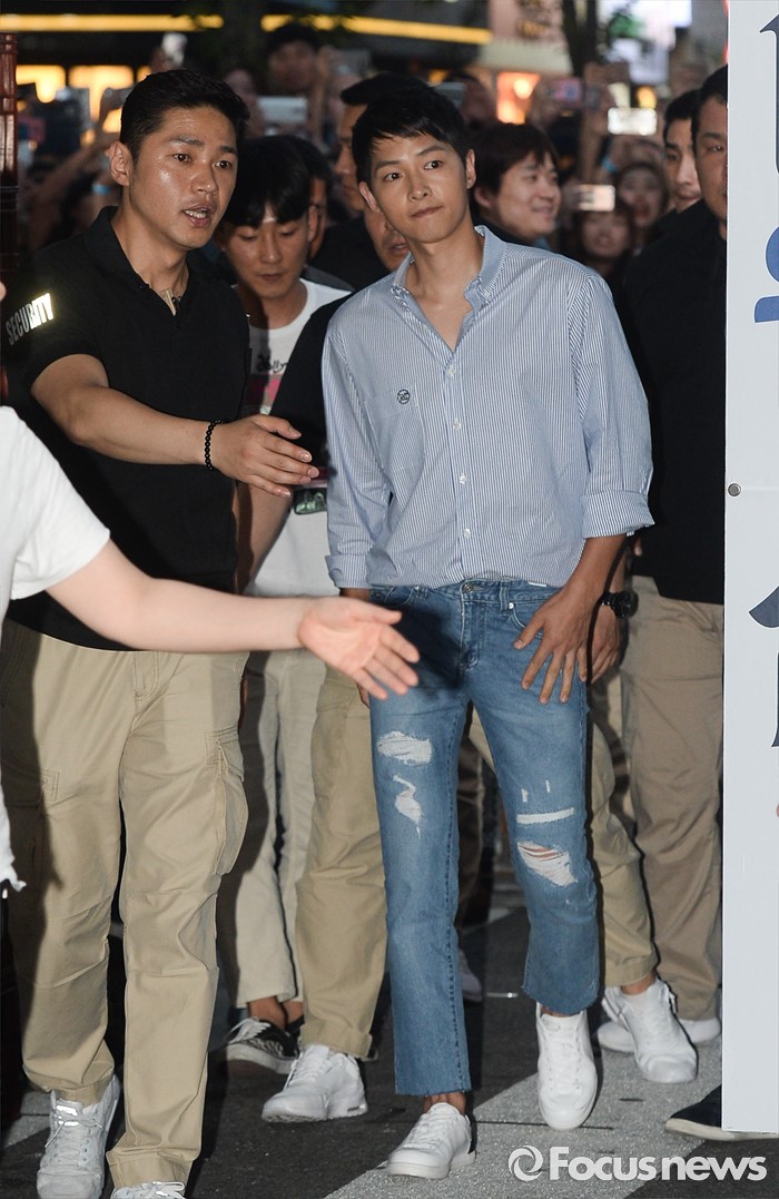 (서울=포커스뉴스) 14일 오후 서울 서대문구 신촌 일대에서 열린 '제2회 신촌맥주축제'에 참석한 배우 송중기가 무대로 들어서고 있다.
