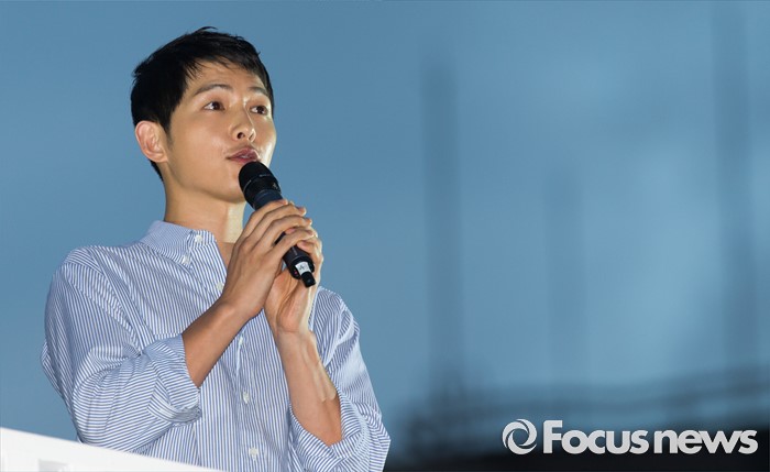 (서울=포커스뉴스) 14일 오후 서울 서대문구 신촌 일대에서 열린 '제2회 신촌맥주축제'에 참석한 배우 송중기가 인사말 하고 있다.