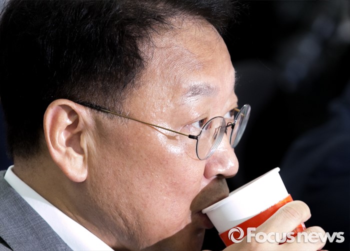 (서울=포커스뉴스) 15일 오전 서울 여의도 국회에서 열린 2016년도 추가경정예산 당정협의에 참석한 유일호 경제부총리 겸 기획재정부 장관이 음료를 마시고 있다.