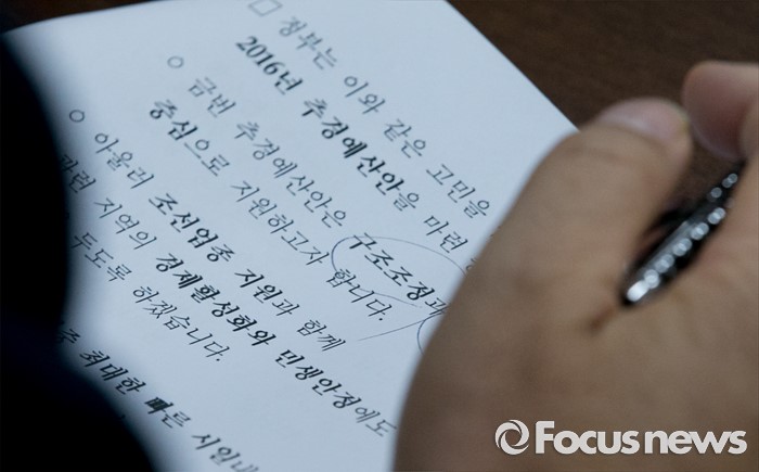 (서울=포커스뉴스) 15일 오전 서울 여의도 국회에서 열린 2016년도 추가경정예산 당정협의에 참석한 기획재정부 관계자가 자료를 살펴보고 있다.