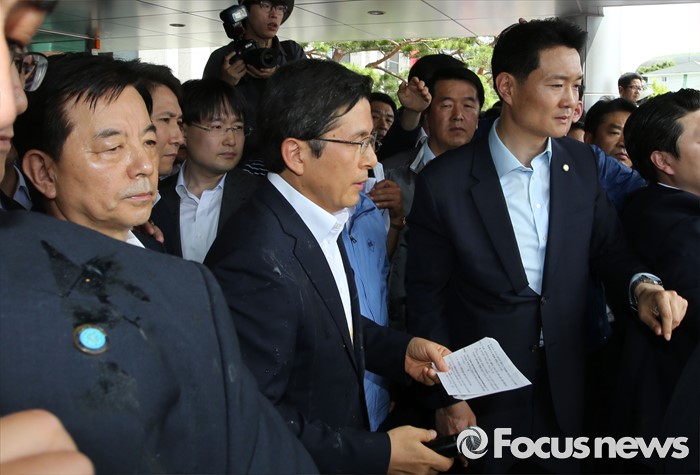 (성주=포커스뉴스) 황교안 국무총리가 15일 오전 경북 성주군청광장에서 사드(THAAD, 고고도미사일방어체계) 배치에 대한 주민설명회에서 주민들에게 설명을 하고 있다.