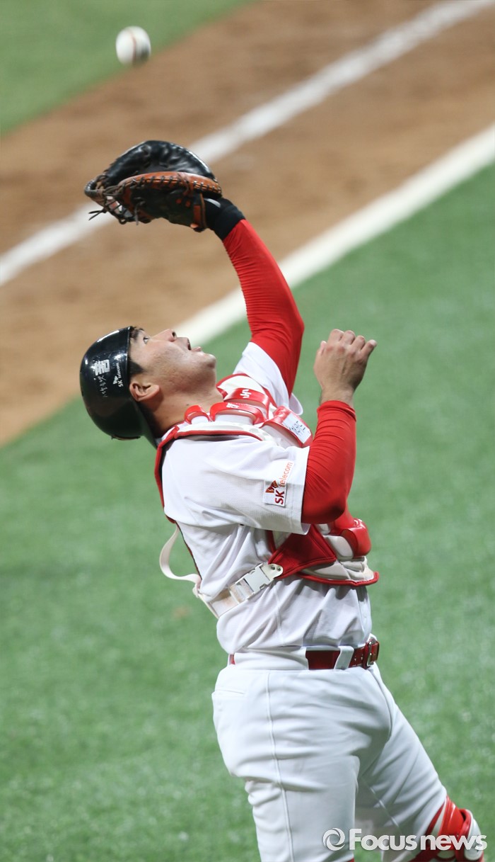 (서울=포커스뉴스) 16일 서울 고척 스카이돔에서 열린 2016 프로야구 올스타 경기 9회 드림팀 포수 이재원이 나눔팀 마지막 타자 나지완의 파울플라이를 잡고 있다.