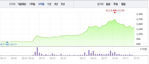 키스톤글로벌은 4월 사람엔터테인먼트 지분을 일부를 인수하는 등 연예 사업을 확장하고 있다.주가흐름<사진출처=네이버 캡쳐>