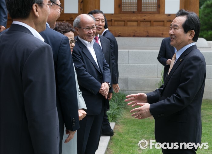 (서울=포커스뉴스) 정세균 국회의장이 18일 오전 서울 여의도 국회 사랑재에서 국회의원 특권 내려놓기 추진위원회 위촉장 수여식을 마친 뒤 참석자들과 기념촬영 후 대화하고 있다.