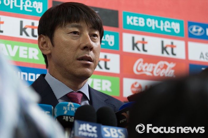 △ 출국 전 취재진 질문 답하는 신태용 감독