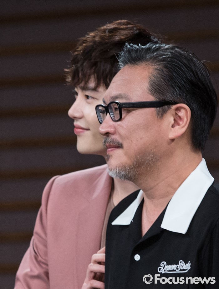 (서울=포커스뉴스) 18일 오후 서울 마포구 MBC 상암사옥에서 열린 MBC 수목미니시리즈 'W' 제작발표회에 참석한 배우 이종석(왼쪽)과 김의성이 포토타임을 갖고 있다.