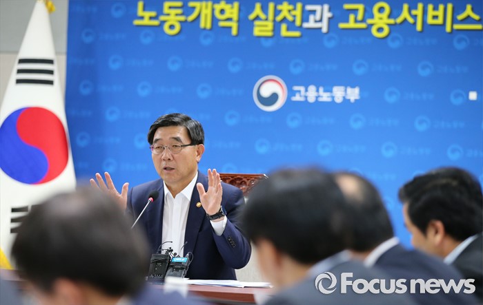 (세종=포커스뉴스) 이기권 고용노동부장관이 18일 오후 세종시 정부세종청사 고용노동부 대회의실에서 열린 전국기관장회의를 주재하고 있다.