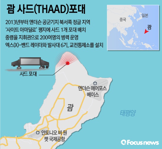 (서울=포커스뉴스) 미군은 18일 괌 앤더슨 공군기지 근처에 배치된 사드 기지를 한국 국방부 관계자들과 한국 언론에 처음으로 공개했다.