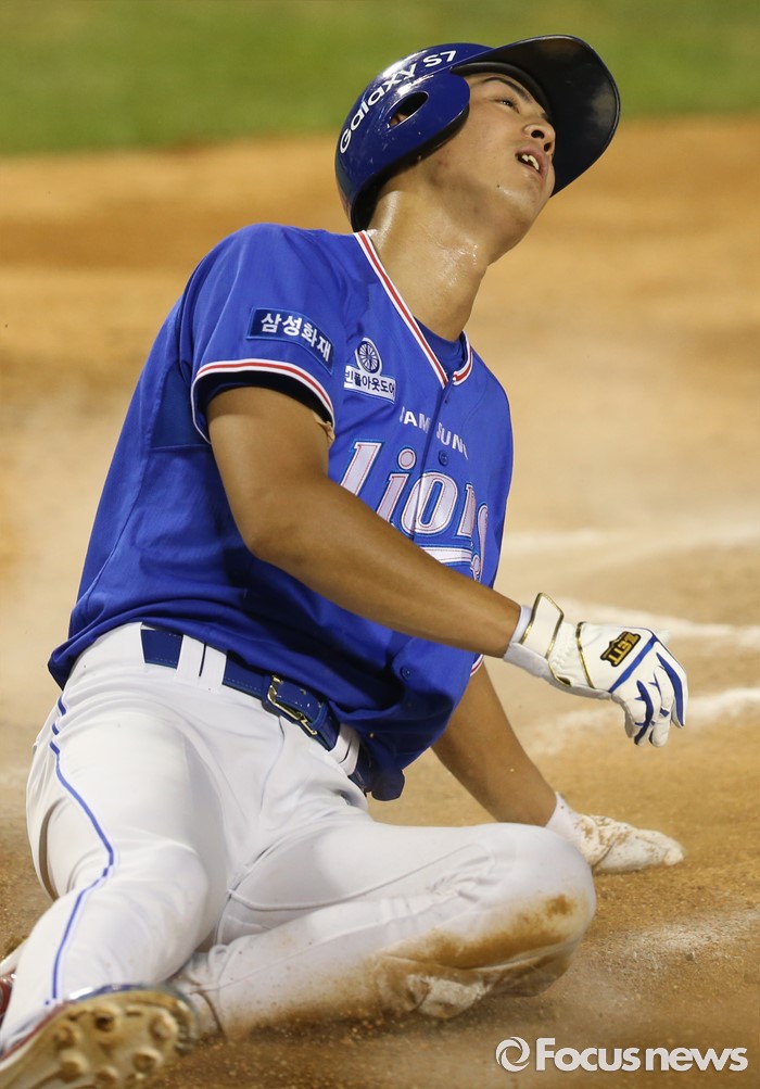 △ 홈에서 아웃되고 허탈해 하는 삼성 구자욱