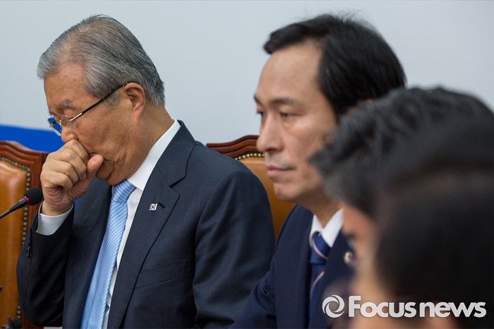(서울=포커스뉴스) 김종인(왼쪽) 더불어민주당 비상대책위 대표가 20일 오전 서울 여의도 국회에서 열린 비상대책위원회의에 참석해 회의 준비 하고 있다.