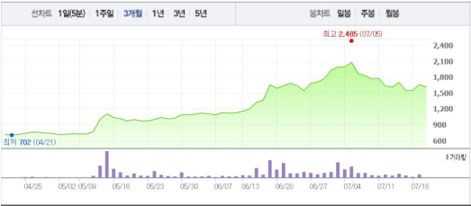 한편, 키스톤글로벌은 6일 열린 임시주주총회에서 정철웅 키위컴퍼니 대표이사를 신임 대표이사로 선임했다. 작곡가 겸 프로듀서인 김형석 씨는 키스톤글로벌의 신규 회장으로 선임됐다.주가흐름<사진출처=네이버 캡쳐>
