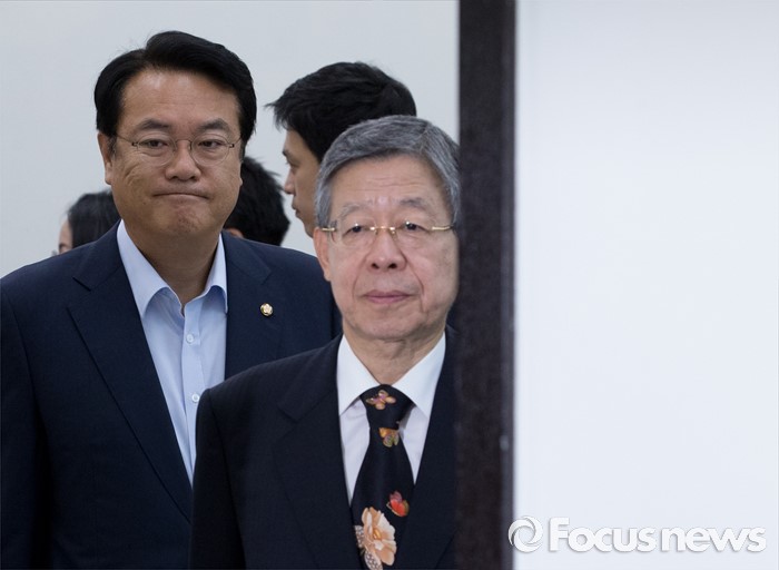 (서울=포커스뉴스) 20일 오전 서울 여의도 국회에서 열린 새누리당 혁신비상대책위원회의에 김희옥 위원장과 정진석 원내대표가 참석하고 있다.