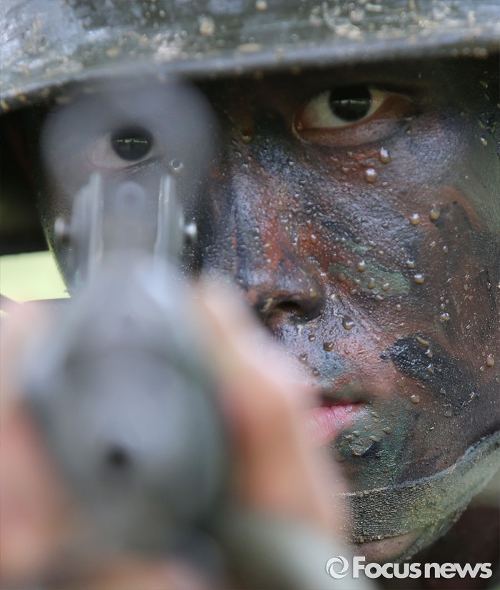 (논산=포커스뉴스) 폭염경보가 발령된 21일 충남 논산 연무읍 육군훈련소 각개전투종합훈련장에서 26교육연대 3교육대 훈련병이 훈련을 받고 있다.
