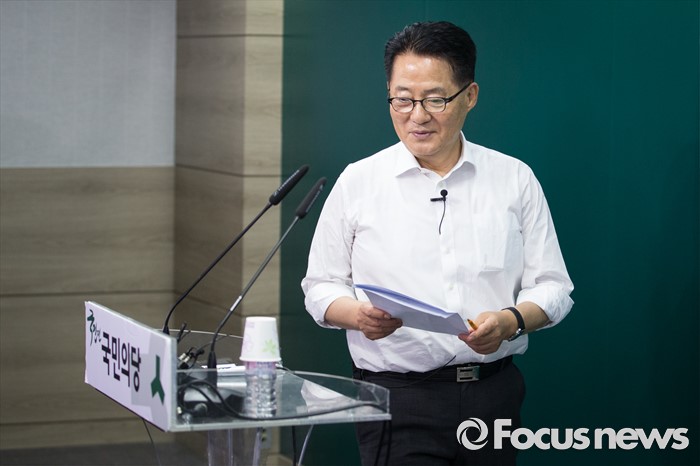 (서울=포커스뉴스) 박지원 국민의당 비상대책위원장 겸 원내대표가 21일 오후 서울 마포구 당사에서 ‘유튜브’를 통해 사드(THAAD·고고도미사일방어체계)의 한반도 배치 철회를 요구하는 자체 '장외 필리버스터'를 하기 위해 발언대로 입장하고 있다.