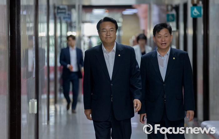 △ 면담 위해 이동하는 정진석-김명연