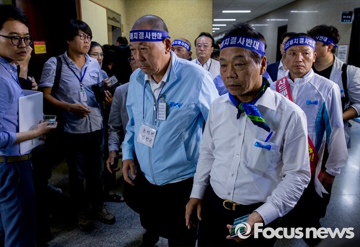 (서울=포커스뉴스) 21일 오후 서울 여의도 국회에서 이완영 새누리당 의원과 김항곤 성주군수 등 성주 사드배치 저지 투쟁위원회 관계자들이 정진석 원내대표 등 지도부와의 면담을 위해 이동하고 있다.