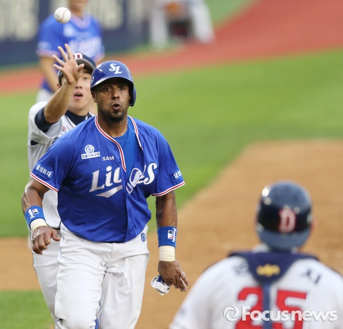 | △ 런다운에 걸린 삼성 발디리스 |