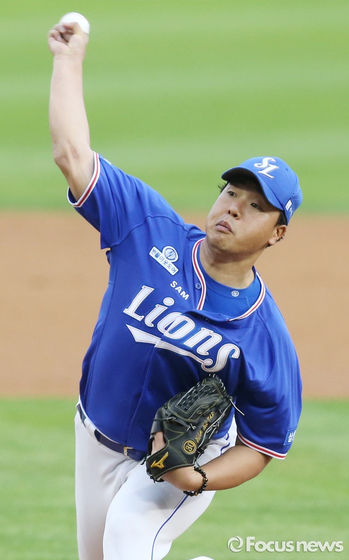 △ 투구하는 삼성 선발투수 김기태