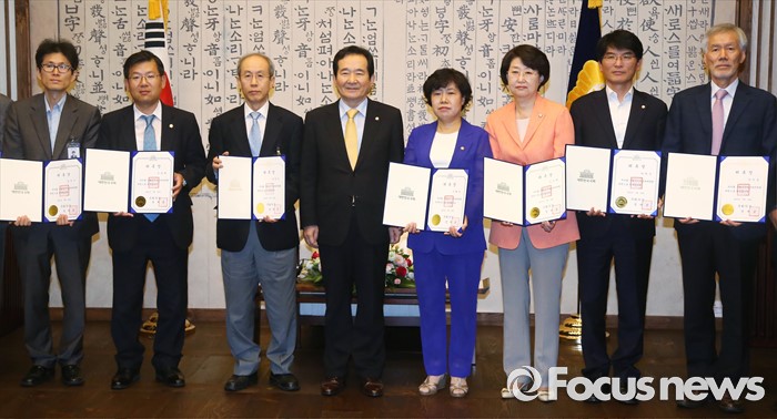 기념촬영하는 정세균 의장과 위원들