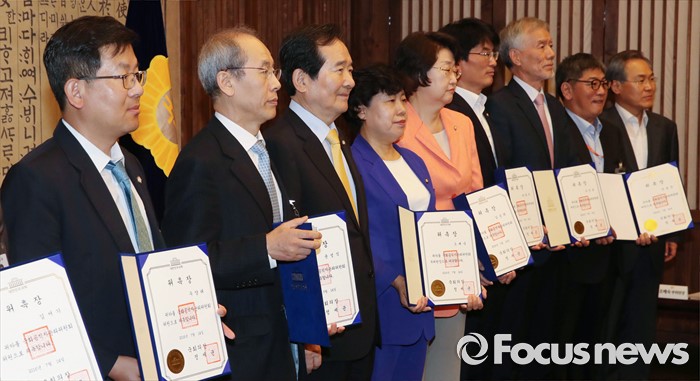 △ 국회 공직자윤리위원들과 포즈 취한 정세균 국회의장