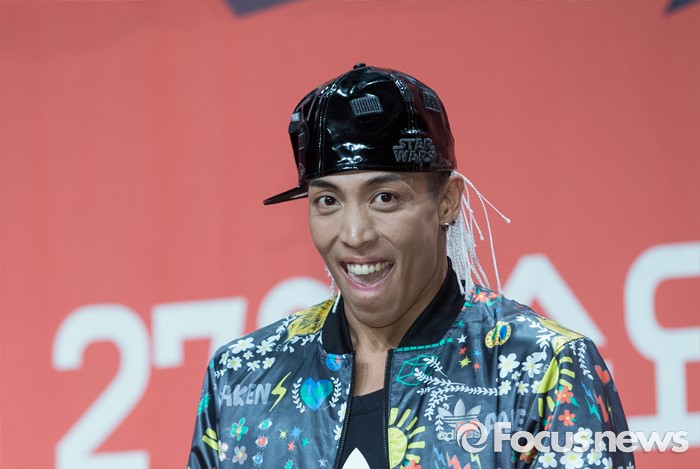 (서울=포커스뉴스) 22일 오후 서울 영등포구 63스퀘어에서 열린 Mnet '힛 더 스테이지' 제작발표회에 참석한댄서 제이블랙이 무대를 선보인 후 호흡을 가다듬고 있다.