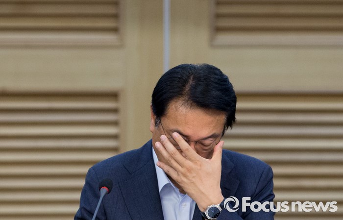 (서울=포커스뉴스) 22일 오후 서울 여의도 국회 의원회관에서 열린 '격차해소를 위한 해법, 왜 중향평준화인가?' 세미나에 참석한 정진석 새누리당 원내대표가 안경을 고쳐쓰고 있다.