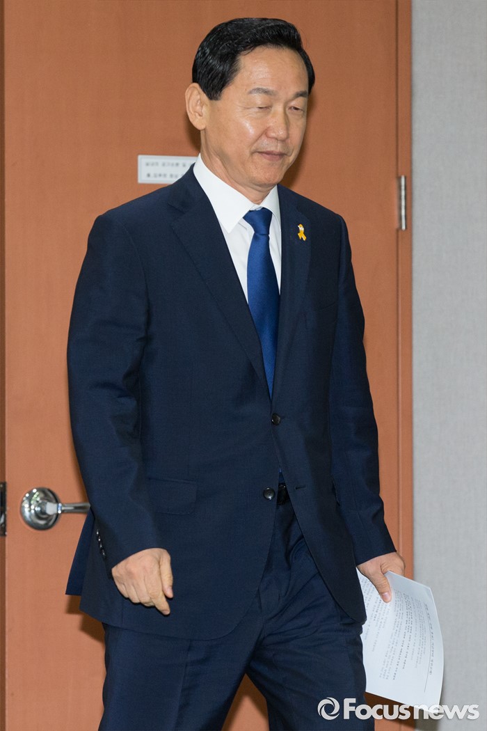 (서울=포커스뉴스) 김상곤 전 더불어민주당 혁신위원장이 24일 오전 서울 여의도 국회 정론관에서 당대표 출마 기자회견을 위해 들어서고 있다.
