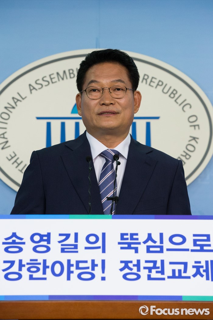 (서울=포커스뉴스) 송영길 더불어민주당 의원이 24일 오전 서울 여의도 국회 정론관에서 당대표 출마 기자회견을 하고 있다.