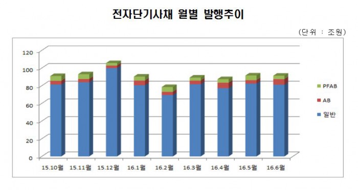 이는 일반 전자단기사채 발행량의 대부분을 차지하고 있는 초단기(7일 이내) 전자단기사채 발행량의 증가 추세가 주춤해졌기 때문으로 분석된다.