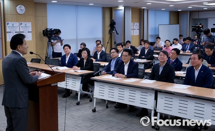 (서울=포커스뉴스) 25일 오전 서울 여의도 국회 의원회관에서 열린 '왜 협력이익배분제 인가?, 협력이익배분제 법제화의 필요성 세미나'에 참석한 정동영(왼쪽) 국회 미래일자리특위 위원장이 축사를 하고 있다.