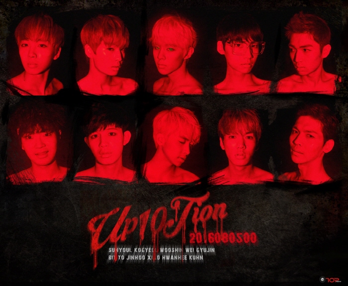 또 공포영화 포스터처럼 ‘Up10tion 2016080500’ 라고 표기된 부분에는 마치 빨간 피가 흘러내리는 듯한 효과로 더욱 음산한 분위기를 자아내고 있다.