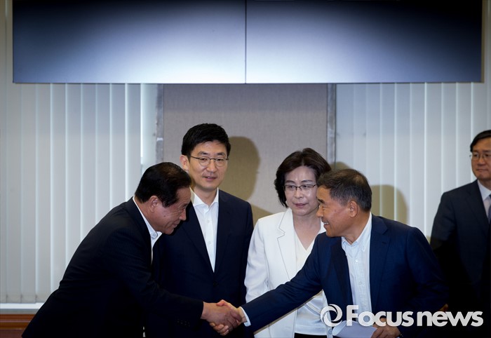 △ 인사하는 정치발전특위 간사들