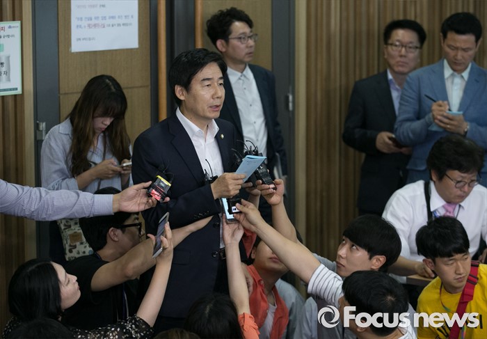 | △ 결과 브리핑하는 이용호 원내대변인 |